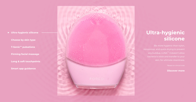 2-in-1 cleansing and firming. Perfectly tailored to your skin. The iconic LUNATM 3 is clinically proven to remove 99.5% of dirt and oil from your skin. Made of velvety soft silicone that is bacteria-resistant, and 35x more hygienic than nylon brushes.