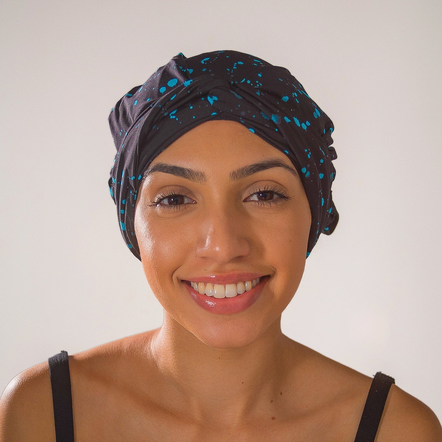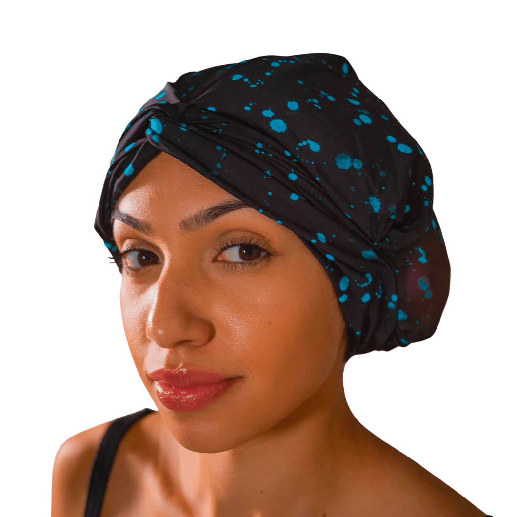 Discontinued - Hair Turban in Midnight Aqua Splatter | D'Hair