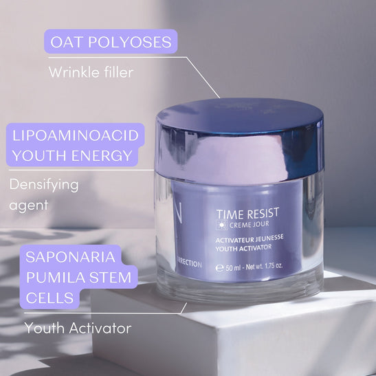 Time Resist Jour is one of the best anti-wrinkle creams with hyaluronic acid. This anti-wrinkle day cream is enriched with smoothing oat polyoses, wrinkle-filling konjac spheres, and hyaluronic acid to provide the skin with all the moisture it needs.