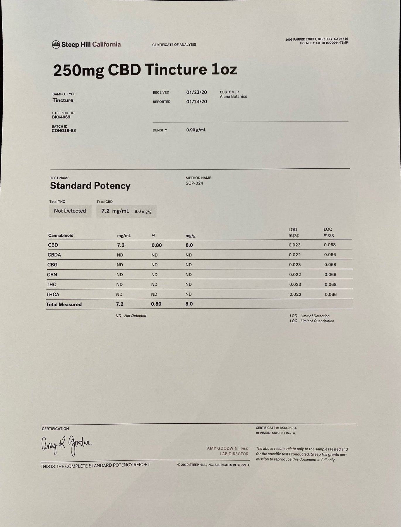 CBD Tincture-Oil | Alana Botanics - 250 mg