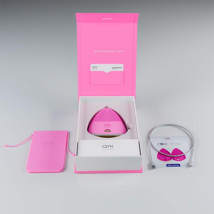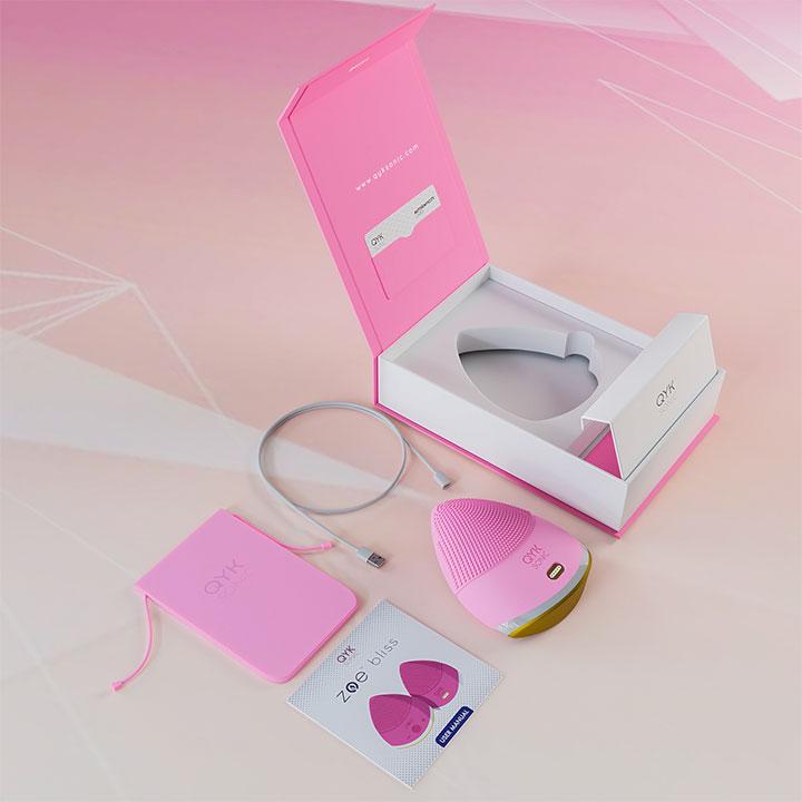 The latest Sonic Beauty Device, ZOE Bliss, cleanses, massages, and applies skincare for optimal short- and long-term results. Featuring an innovative design and revolutionary Transdermal Sonic Technology, it delivers 7,000 micro-pulsations per minute to cleanse, exfoliate, massage, and enhance skincare product penetration and absorption at a cellular level.