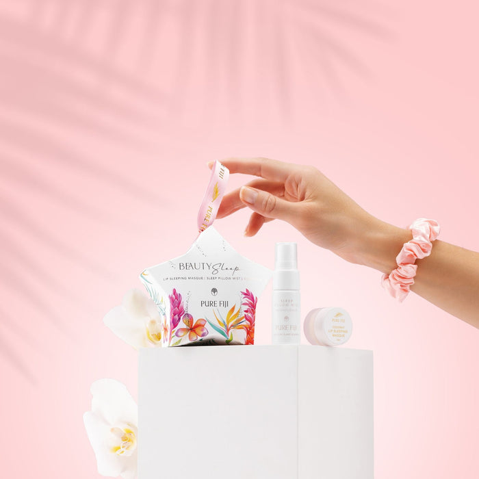 Dreamland awaits with an overnight Lip Masque, Moonflower Sleep Pillow Mist & Hair Scrunchie - your ultimate Beauty Sleep companions under the stars.