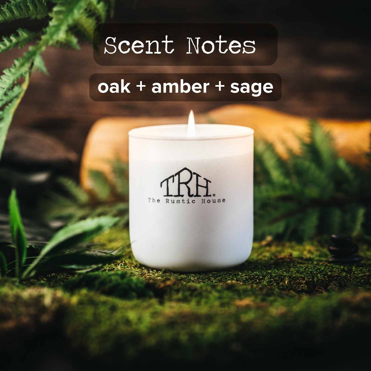 A morning meditative walk in the woods, with the sun shining through the trees, inspired this complex oak + moss candle. Lavender, orange, and sage notes add freshness, while amber provides depth and warmth, creating a perfectly balanced scent.