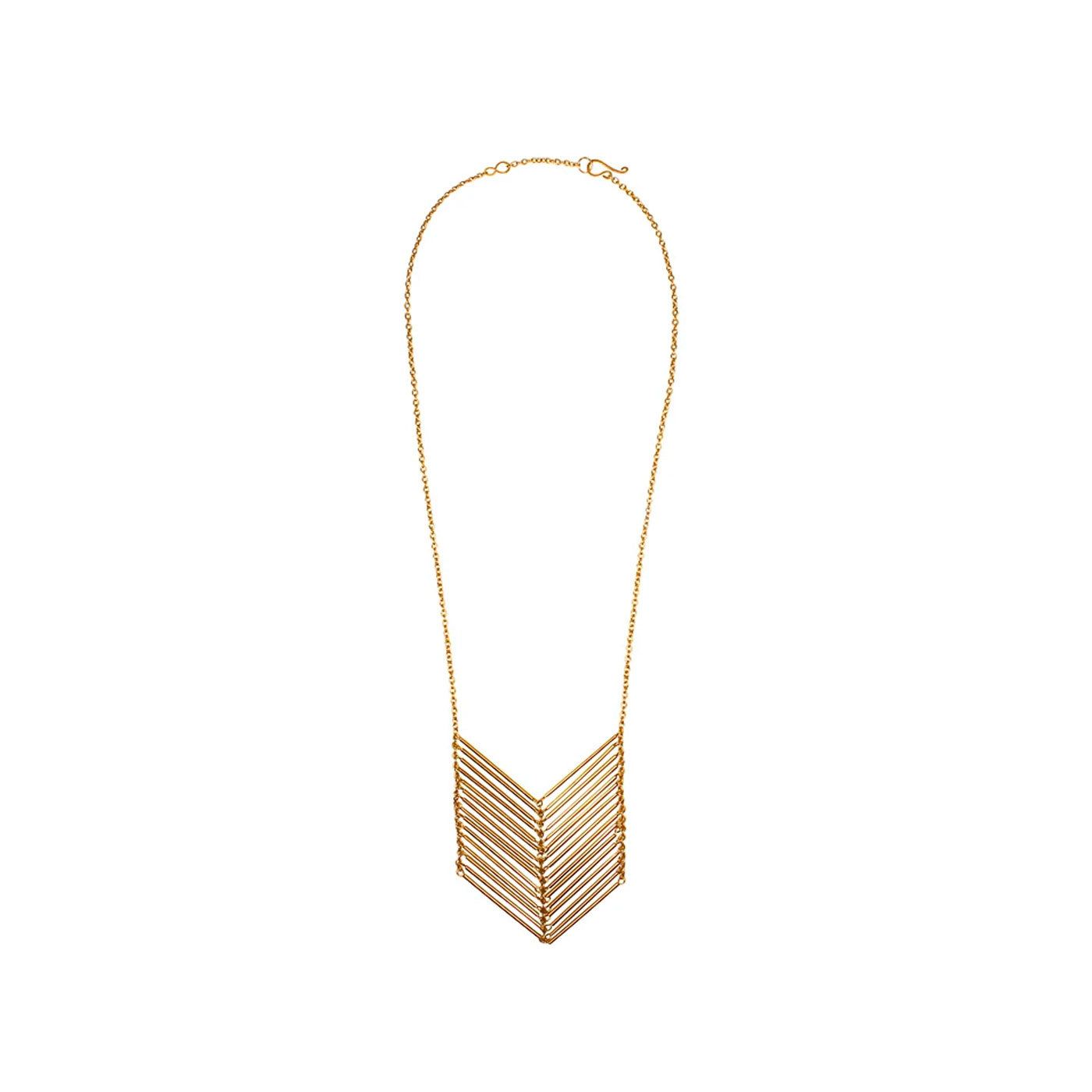 This simple yet sophisticated, eye-catching piece will add a modern edge to any look, whether for going into the office or for a night out with friends. This versatile Chevron necklace hangs low with a waterfall finish, intricately made with fine details.