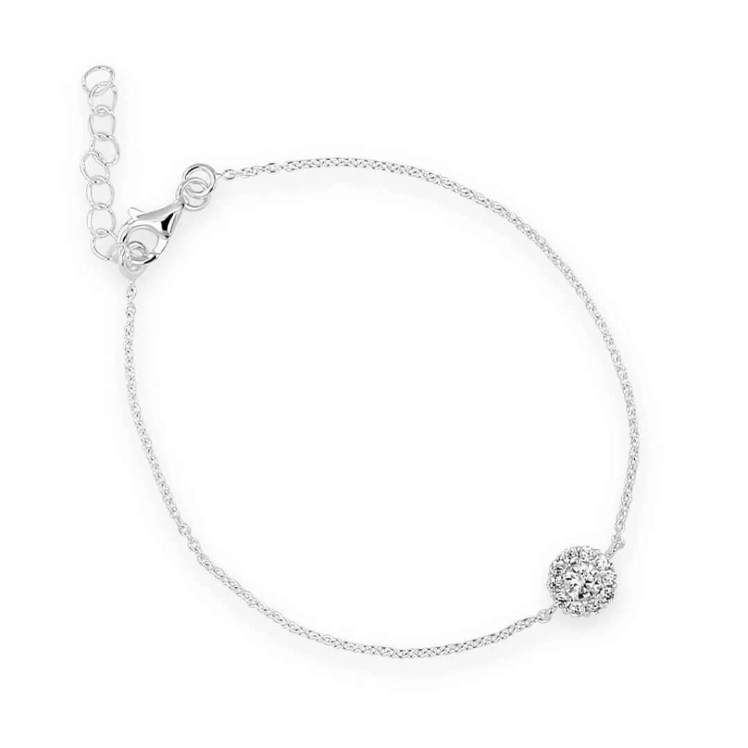 The round brilliant-cut sparkles in a halo pinwheel design symbolize happiness, optimism, and confidence. Like a beacon of light, it effortlessly uplifts those around you.