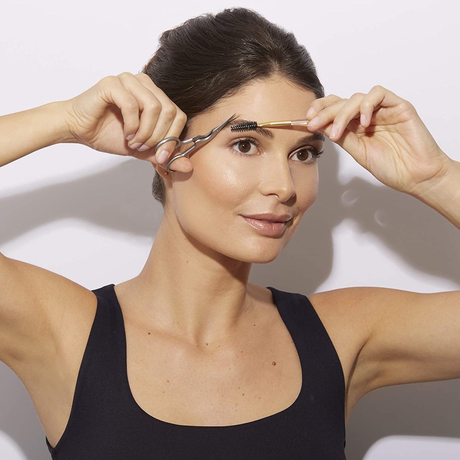 Expertly trim and shape brows with the Brow Shaping Scissors & Brush, featuring ultra-thin blades custom-designed for precise brow hair trimming. The uniquely contoured body ensures comfortable handling, and the included brow shaping brush enhances precision and control.