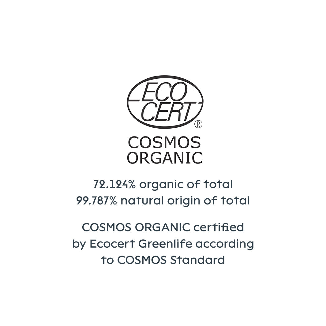 COSMOS ORGANIC certified by Ecocert Greenlife according to COSMOS Standard