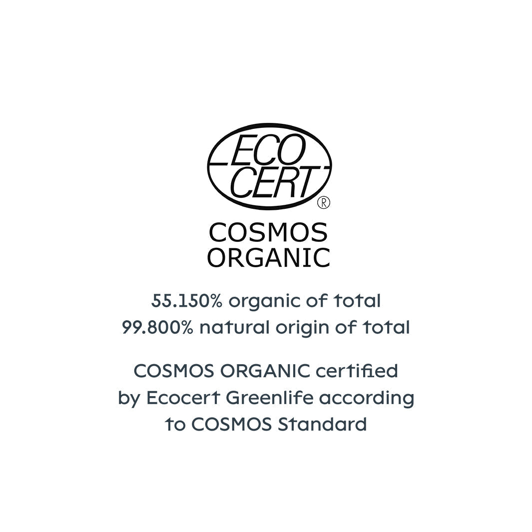 COSMOS ORGANIC certified by Ecocert Greenlife according to COSMOS Standard