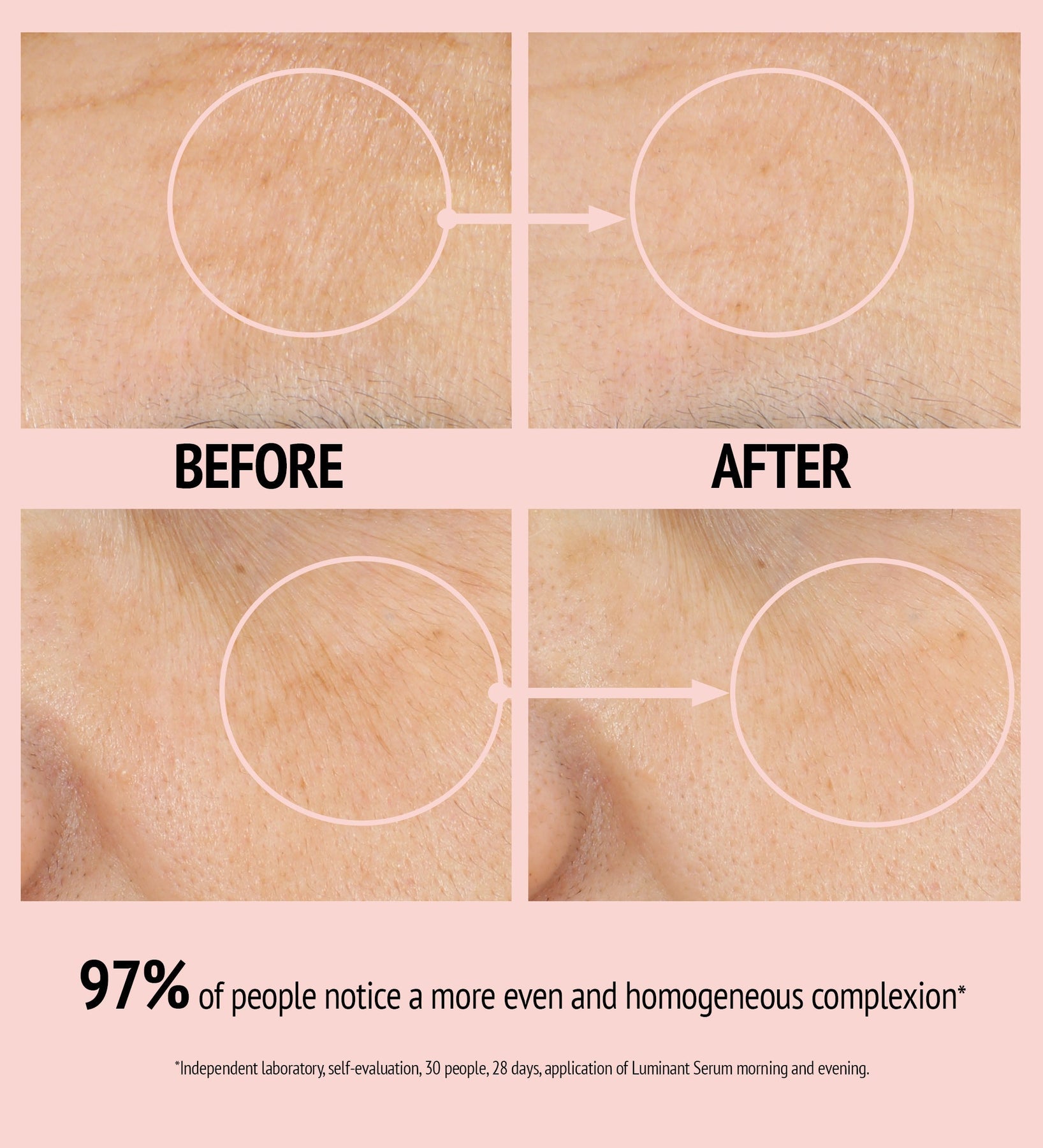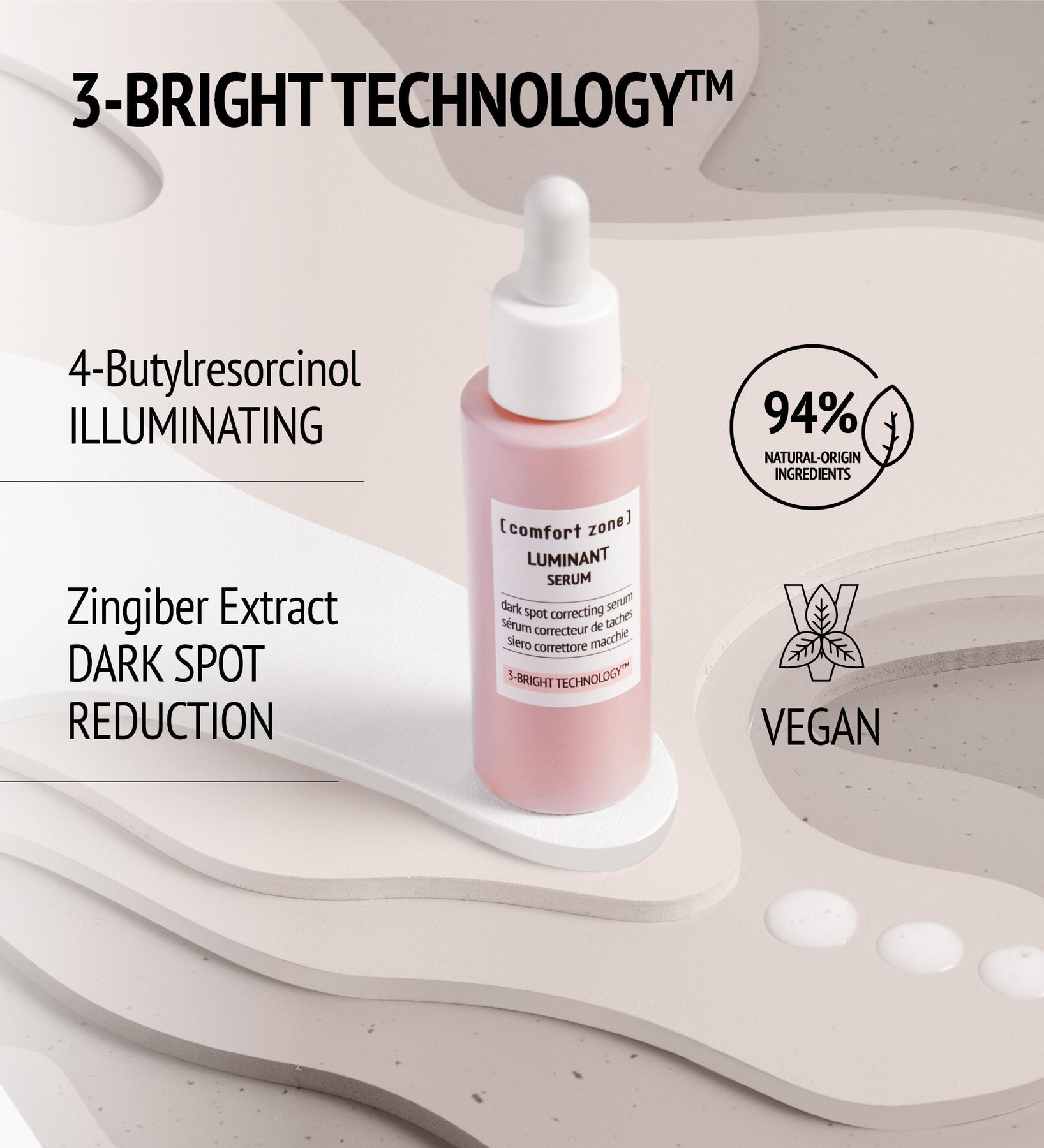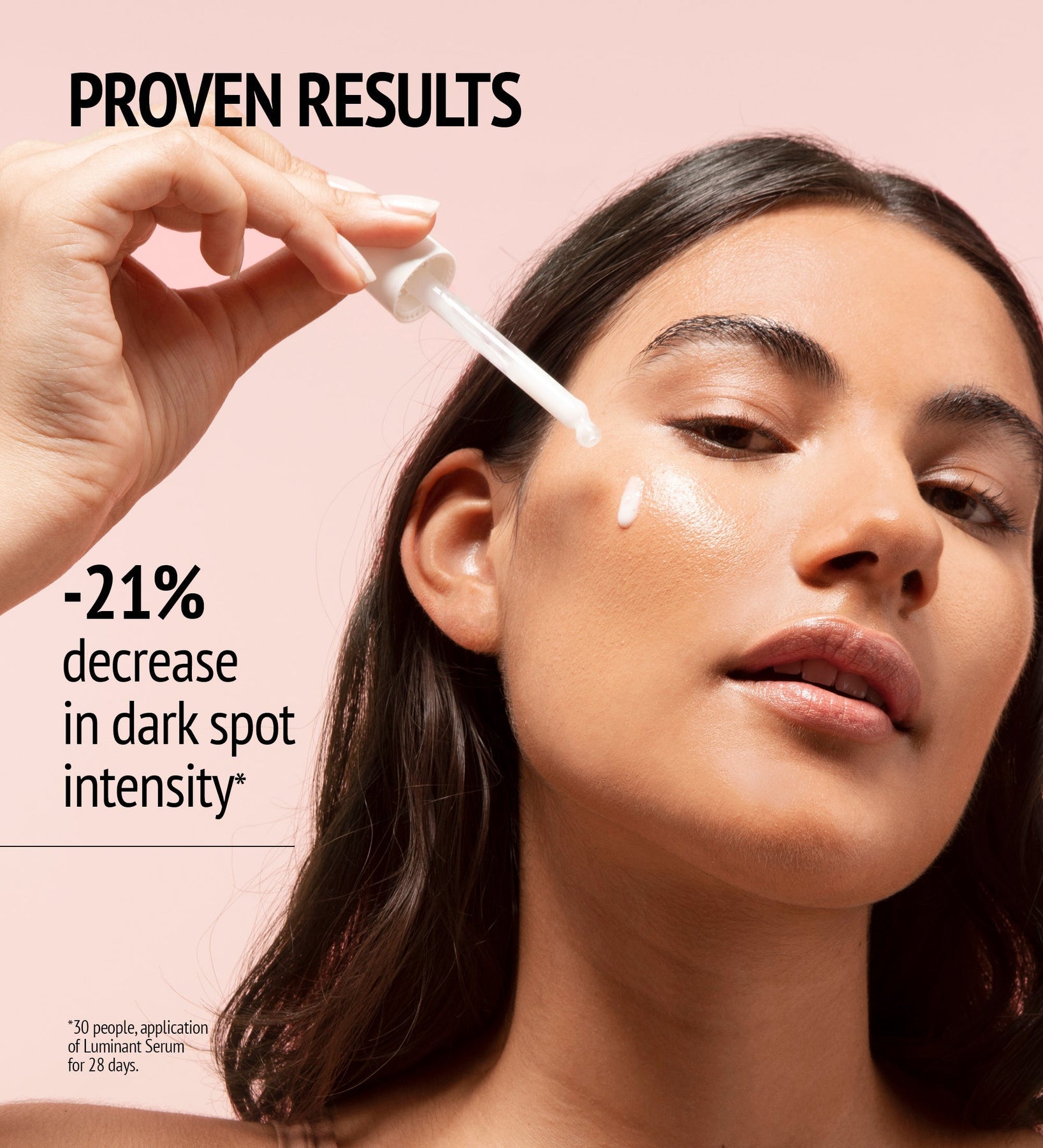 Discover the new Luminant Serum, a concentrated cosmetic treatment clinically tested to help target dark spots in just 28 days*. Merging dermatological science and nature, the line's innovative 3-BRIGHT TECHNOLOGYTM helps to target dark spots, reducing their appearance and illuminating the complexion.