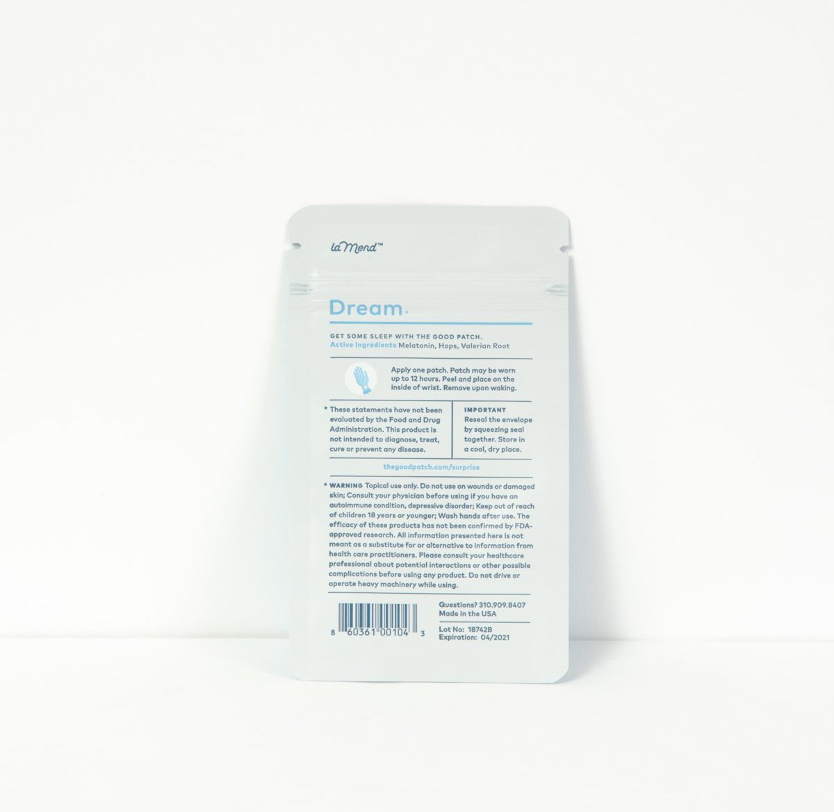Dream (4 Patches): Infused with 10 mg of melatonin, along with hops and valerian root to give you the quality shut eye you have been craving.