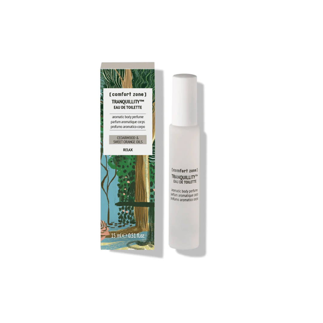 Discover the ultimate in [ comfort zone ]! An aromatic body perfume enhanced with the iconic TRANQUILLITY™ fragrance that gives a feeling of well-being to body and mind, transforming each application into a special moment. Available in a handy 15 ml size, perfect for carrying it with you at all times!