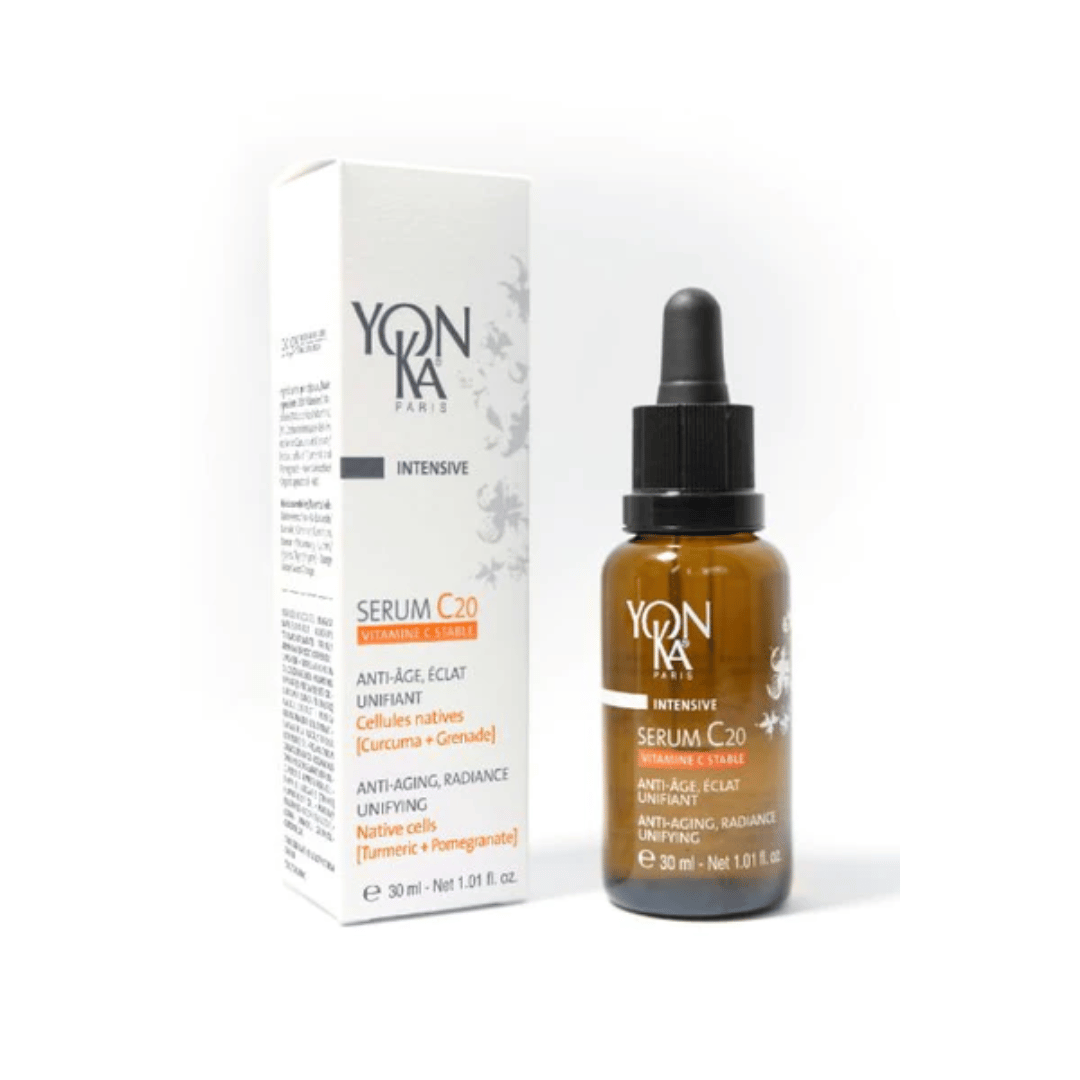 Yon-Ka's powerful brightening face serum is infused with a potent, all-natural 20% Vitamin C stabilized for maximum efficacy and tolerability. Composed of 99.9% ingredients of natural origin, this dark spot serum features Ascorbyl Tetraisopalmitate, an all-natural, oil-soluble form of Vitamin C derived from green science. Their antioxidant face serum helps defend against environmental skin aging and supports the body’s collagen synthesis to help firm skin. Native turmeric and pomegranate cells help intensify the multi-corrective actions of the Vitamin C as they combine to help improve skin firmness and unify skin tone by minimizing the appearance of dark spots and illuminating the complexion. Apricot Kernel Oil, rich in phytosterols, helps moisturize and comfort skin.