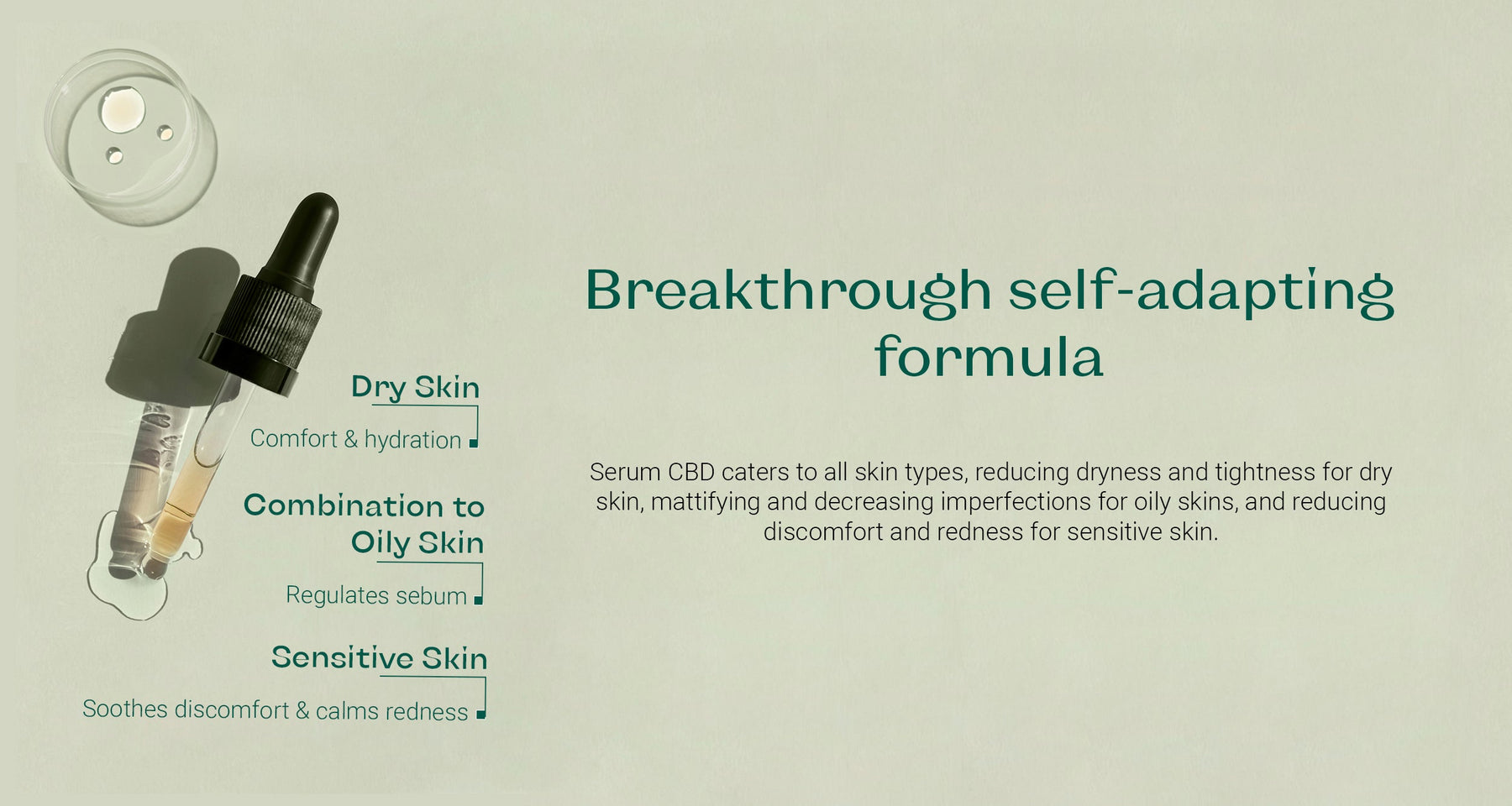 Discover the power of this oleo-serum composed of 99.9% natural ingredients, containing 300 mg of pure CBD and enriched with sacred Lotus and adaptogenic Reishi. This CBD face serum is designed to target skin damage related to stress and lack of sleep. It smoothes the skin, promoting improved skin quality and reduced wrinkles. This serum uniquely adapts to each skin type by offering a self-adaptive formula.