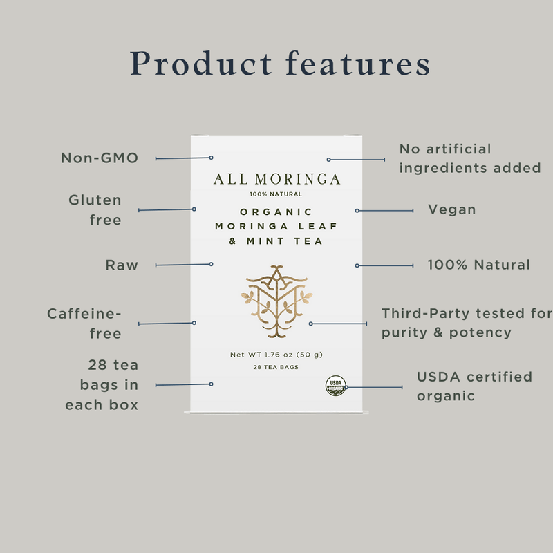 DISCONTINUED - Premium Organic Moringa Leaf, Mint And Chamomile Herbal Tea 28 Tea Bags | All Moringa