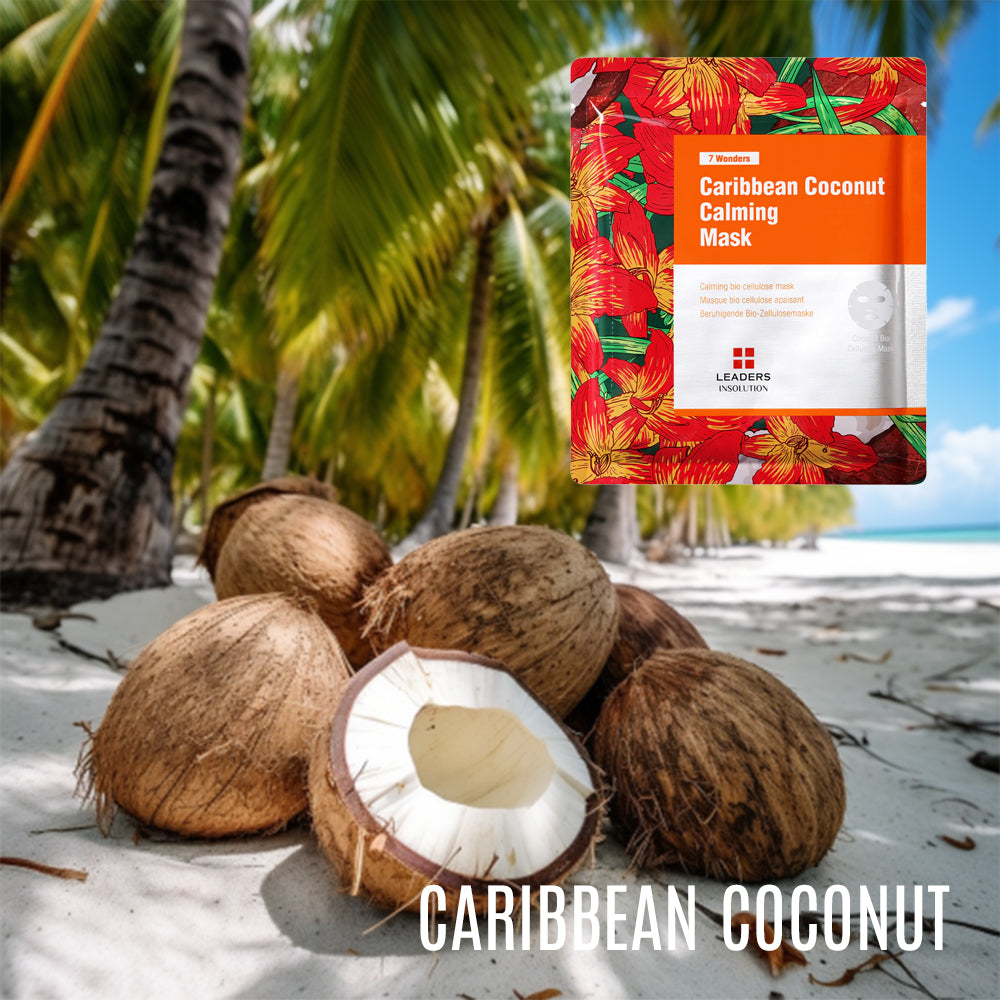 Calm your coconuts - sooling hydrogel mask with Caribbean coconut oil calms for soothed, balanced skin.
