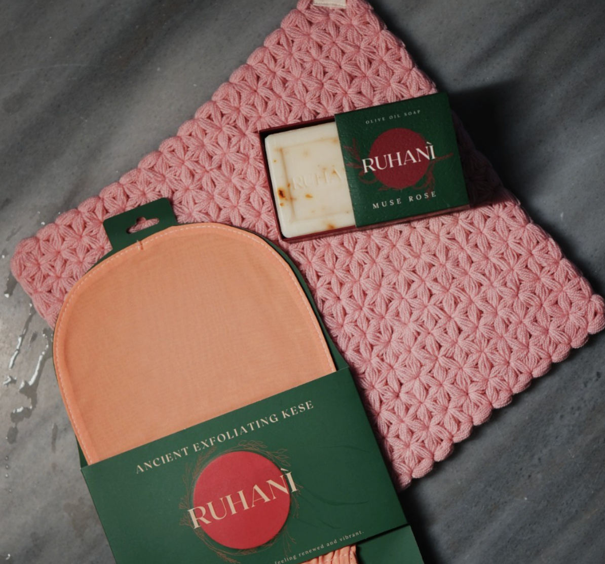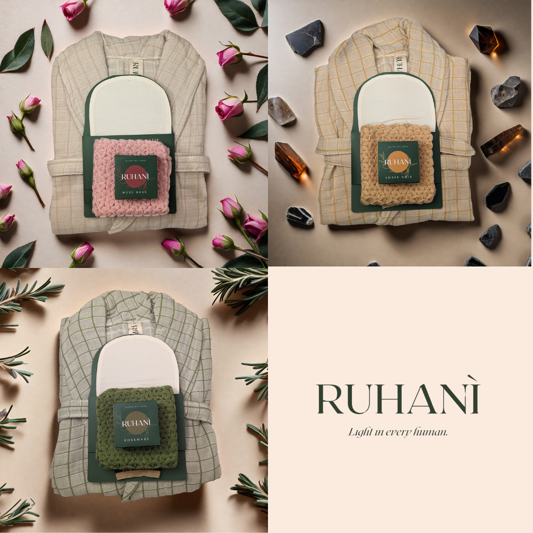 Ruhani, founded by best friends Christina Linton and Elif Koyutürk, is a celebration of Turkish and Roman bathing rituals. Inspired by their transformative experience in Istanbul's Hamam culture, Ruhani invites you to embrace a luxurious collection that includes exquisite soaps, hand-crocheted washcloths, beautiful robes, and the silk exfoliation mitt "Kese." With meticulous craftsmanship and a commitment to empowering Turkish women artisans, Ruhani beckons you to elevate your self-care routine.