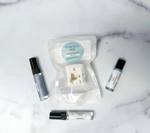 Immerse yourself in the soothing waters of relaxation with Essence One's Turn Down Amenities Kit . Unwind with a heavenly Shower Steamer and let the Aromatherapy Shower Mist wash away your stress. The Rollerball and Mist Spray are your companions for a restful night's sleep.