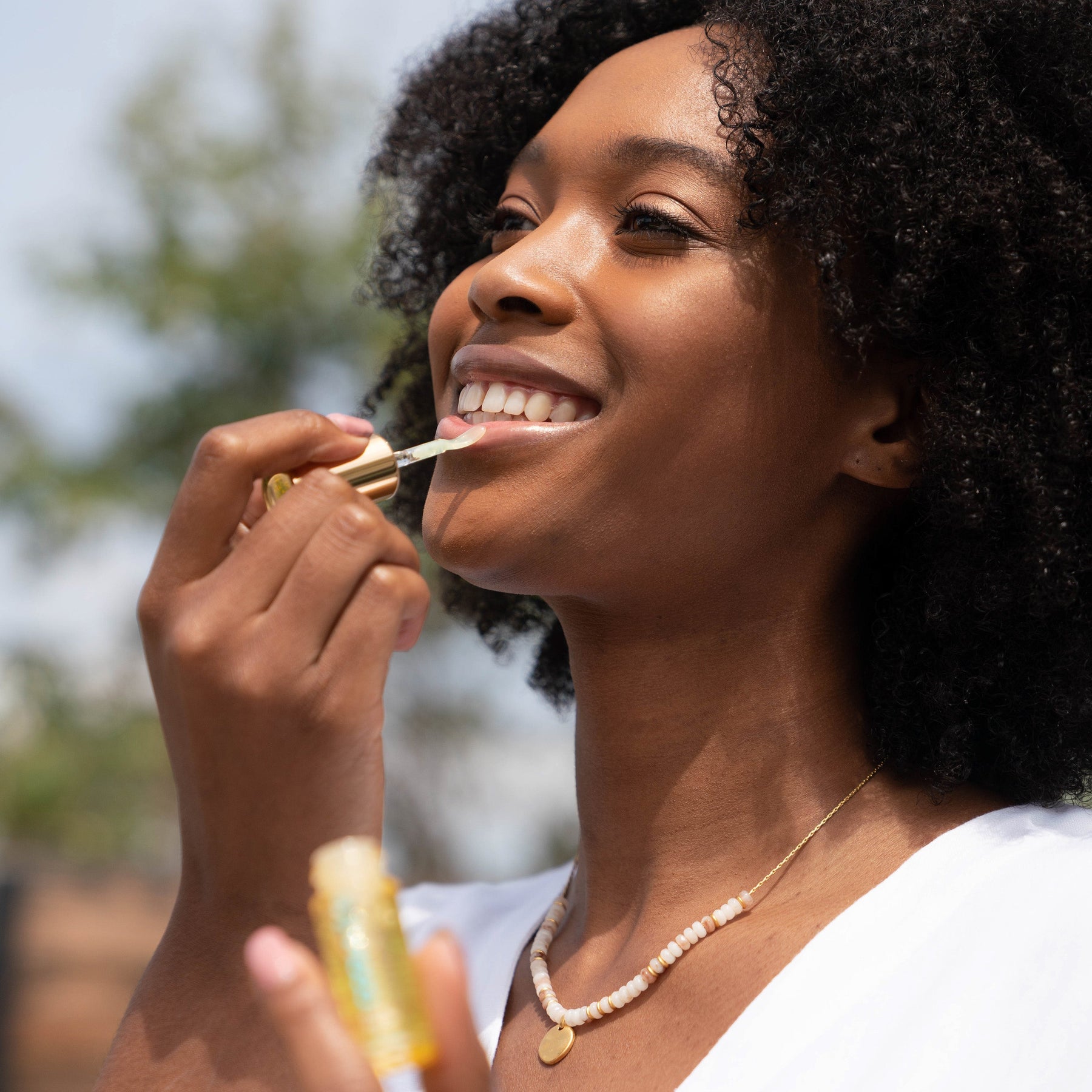 A hydrating tinted organic SPF 30 lip oil that gives lips a plumped look with a gloss-like shine.