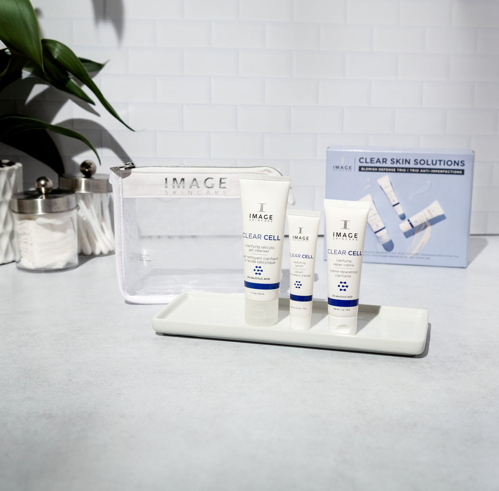 Designed for oily skin, this three-step daily regimen features exfoliating essentials to promote clear, healthy-looking skin, including a refreshing gel cleanser, soothing serum and nighttime repair crème.