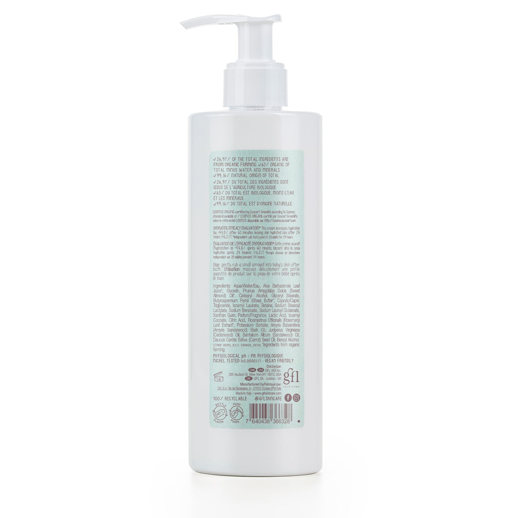 A long-lasting hydration cream prevents damage caused by dryness and leaves skin soft.This delicate formula is suitable for the sensitive skin of babies and toddlers, particularly exposed to external aggression and irritation; restoring the hydro-lipidic film at the surface of the skin.