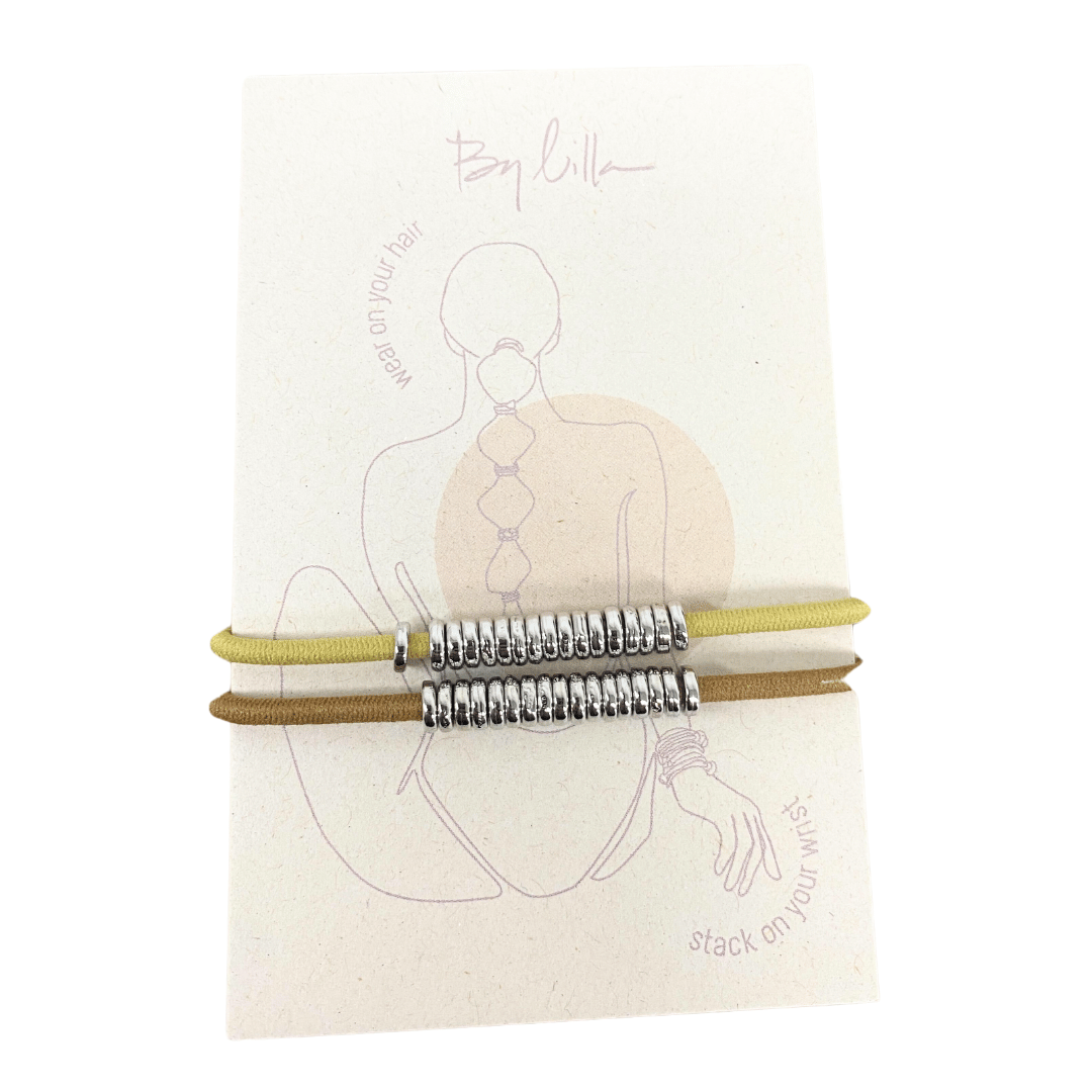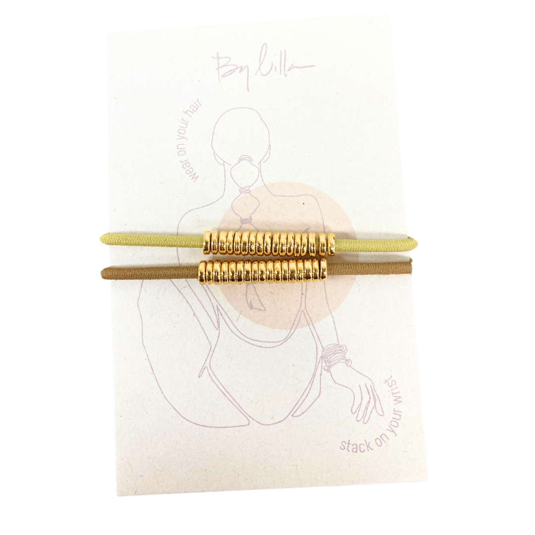 This Disc Elastic takes the best seller crown. Tightly wrapped around the elastic, the discs give it an elegant and contemporary spin to your regular elastic. And NO, it doesn't get stuck in your hair - thousands of you, and us, have tested it!