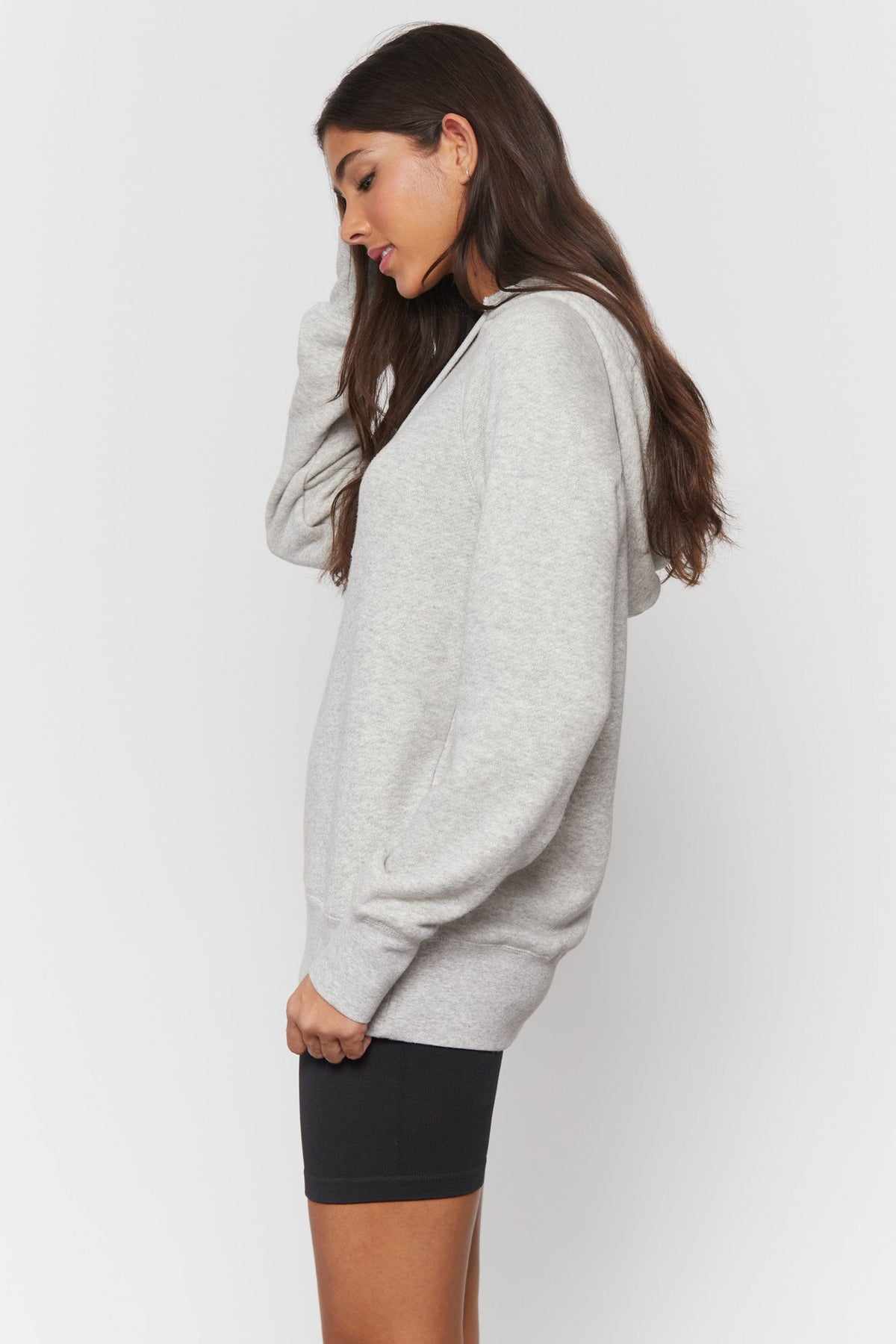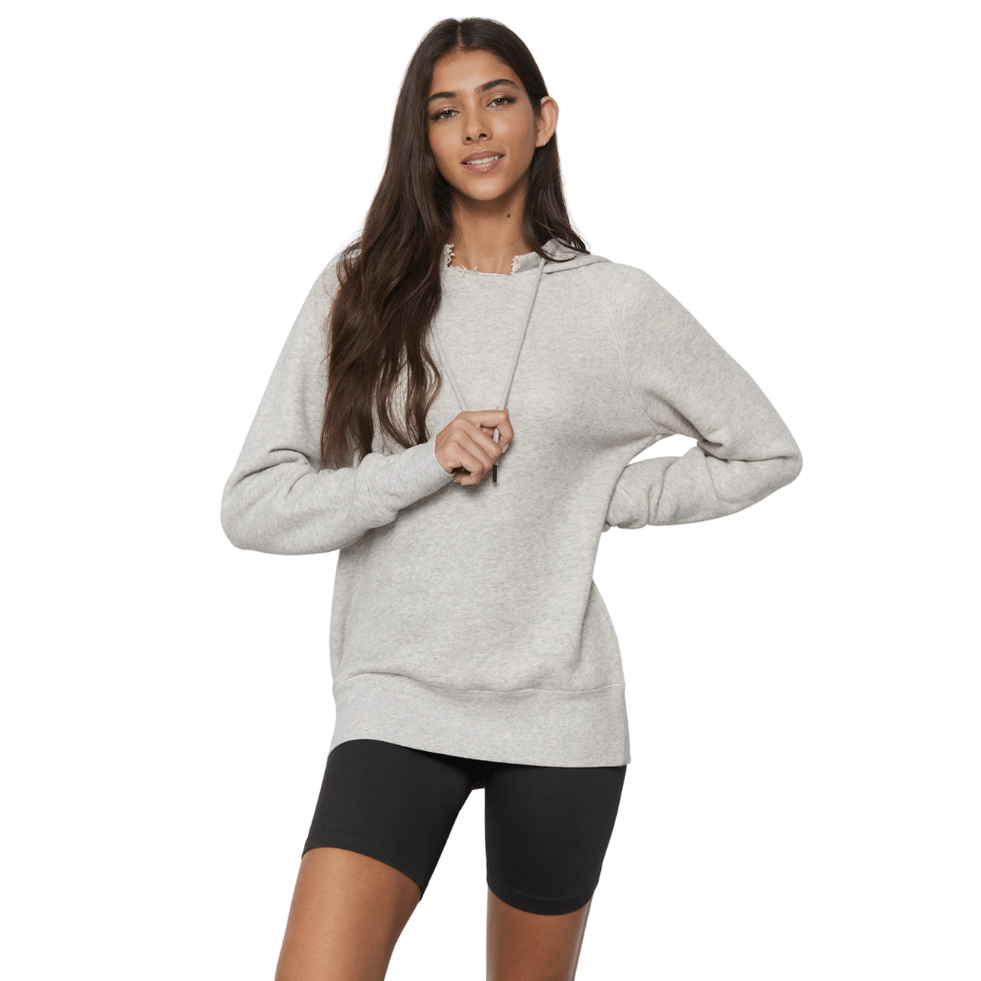 The classic gym hoodie gets a luxe upgrade in our super soft and plush Fluffy Terry fabric. Featuring a heathered effect on the outside and lofty natural-colored loops on the inside, our Gym Hoodie features a raw edge detail at the neck for a vintage vibe, drawstrings for a customized fit, and a slightly longer length for added coverage. On its own or as a cozy layer, this elevated piece will quickly earn top-drawer status.