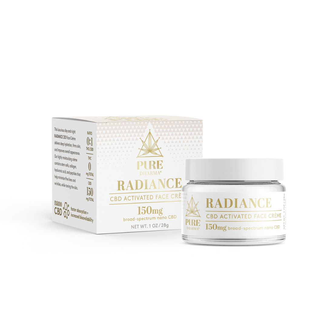 This luxurious day-and-night Radiance CBD face creme delivers deep hydration, firms skin, and improves appearance. It is a moisturizing creme that contains stem cells, collagen, hyaluronic acid, and peptides to help help minimize fine lines and wrinkles. This potent cocktail of plant-based ingredients infuses the skin with vitamins and actives designed to restore all complexions to a healthy and vibrant natural radiance.