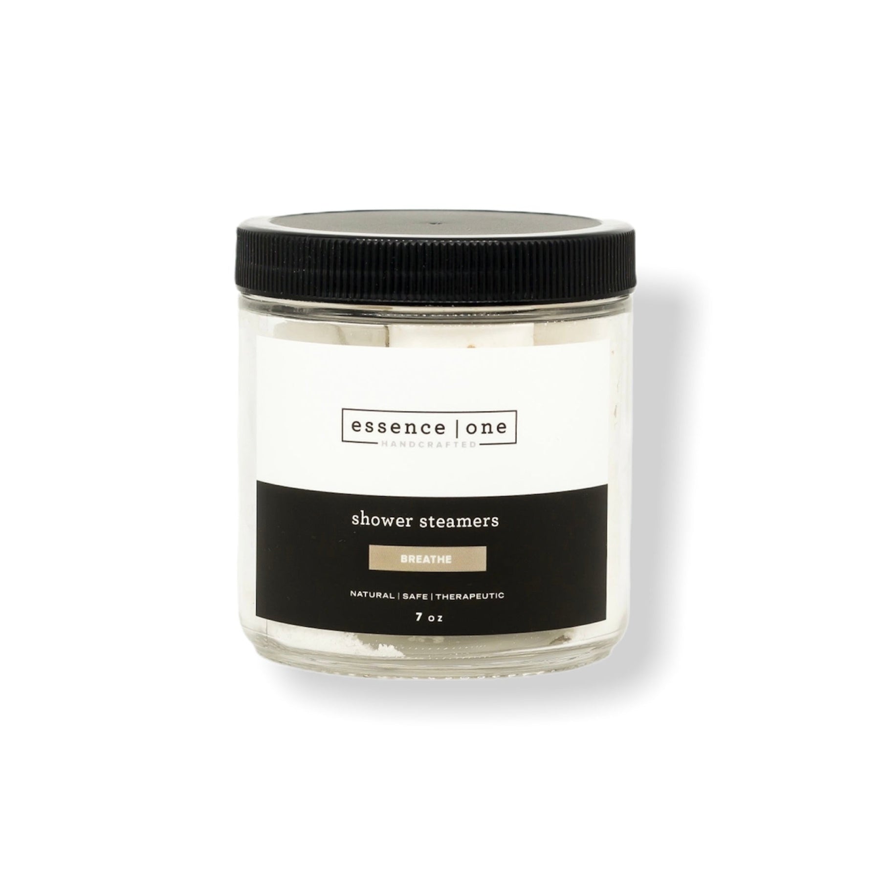 You haven't lived until you have tried a shower steamer! These natural shower delights are easy to use and fill your shower with the smell of your favorite Essence One blend. Offered in four packs and jars (9 steamers).