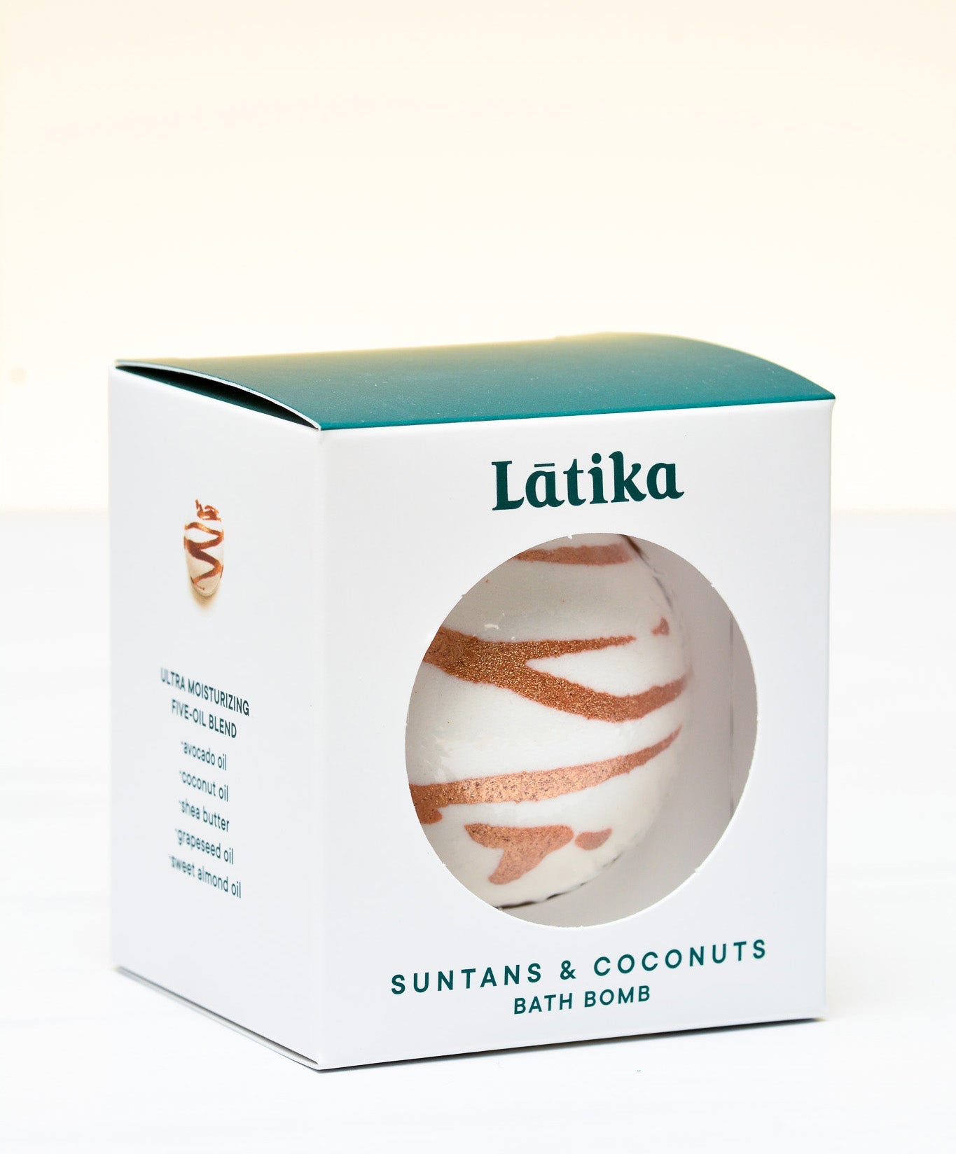 This transportive bath bomb takes you to an exotic beach scene with its delicate hints of coconut, subtle, floral notes, and gentle swirls of vanilla and musk.